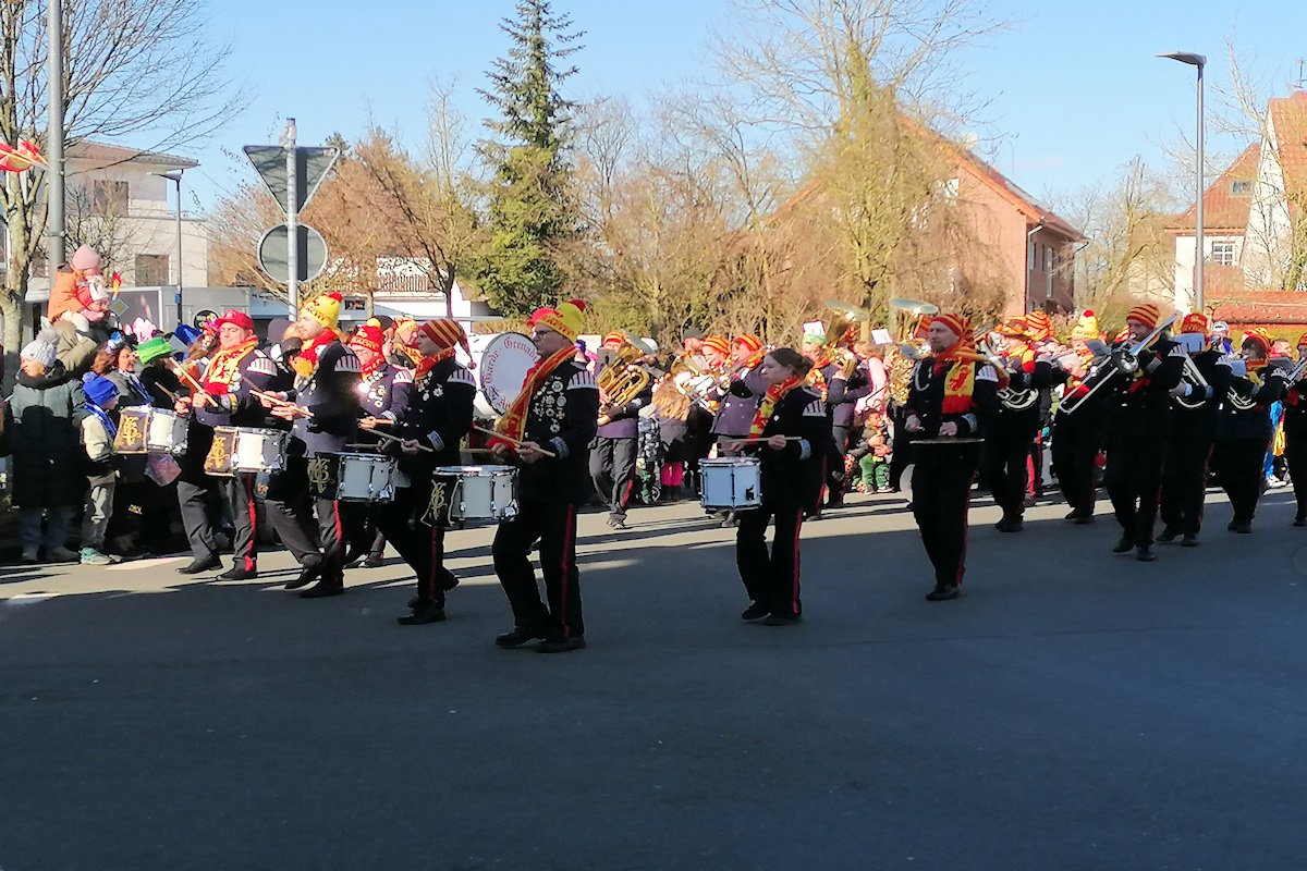 Kinderzug Delbrück 2026: Die Garde-Grenadiere aus Altenbeken; eine Musikkapelle von weiteren Kapellen im Karnevalszug.