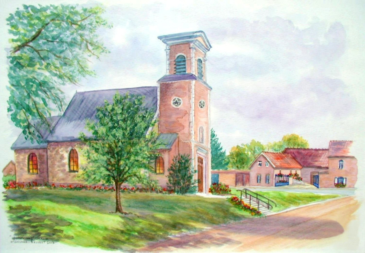 Das Gemälde stellt in leuchtenden Pastelltönen die Kirche St. Landelinus in Quérénaing dar. Vor der Kirche steht das Symbol der Freundschaft, die prächtig gewachsene “Landelinus-Linde”. Die Linde, ein Geschenk von Altbürgermeister Bernhard Kößmeier, war 1994 auf dem Dorfplatz in Quérénaing gepflanzt worden.
