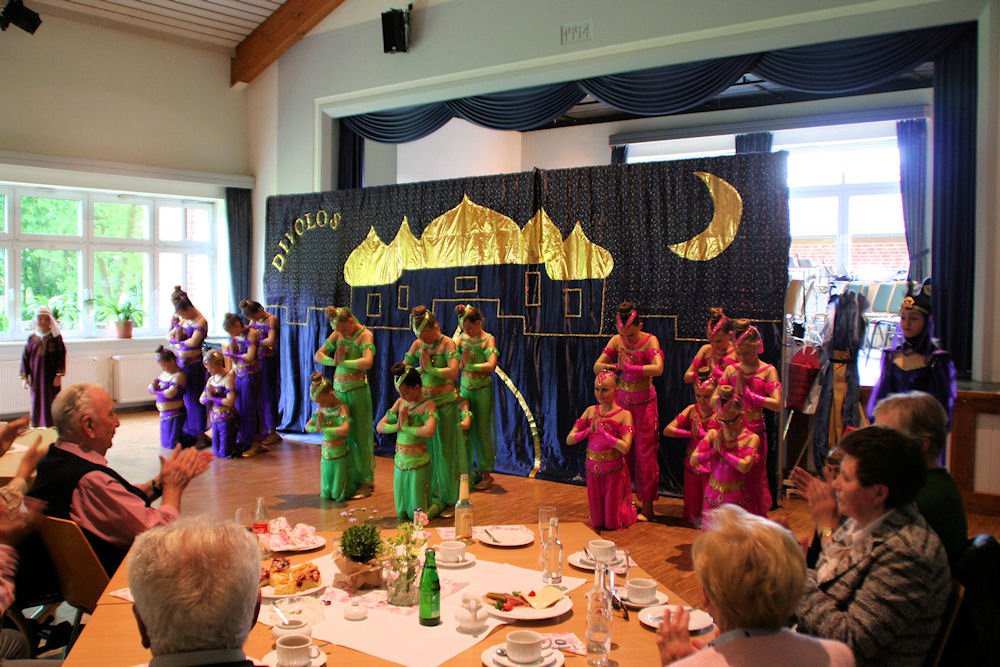 Ein besonderer Höhepunkt des diesjährigen Seniorennachmittags bildete der Auftritt der Kindershowtanzgruppe Divolos der Tanzsportabteilung des SC Ostenland. Die 30 jungen Tanzkünstler in ihren bunten Kostümen entführten mit ihrem Showtanz die Teilnehmer in die Märchenwelt von Tausendundeine Nacht.