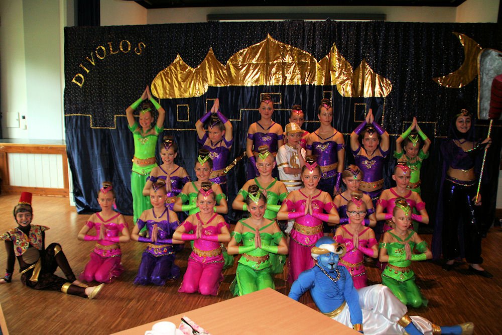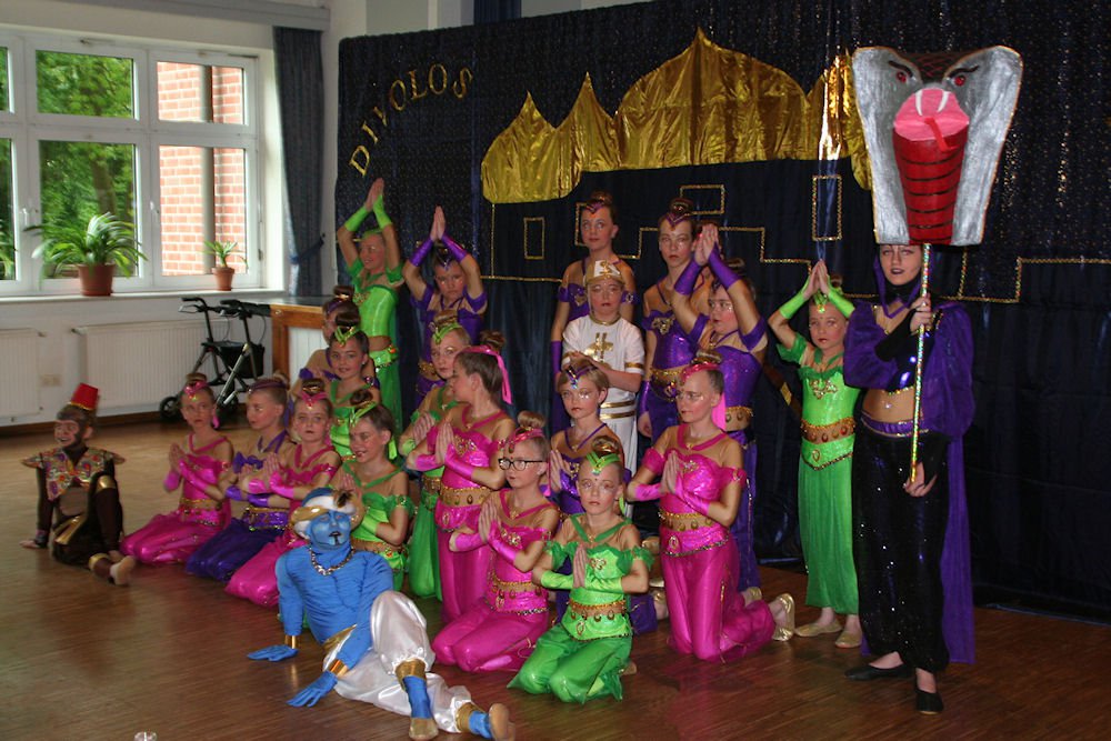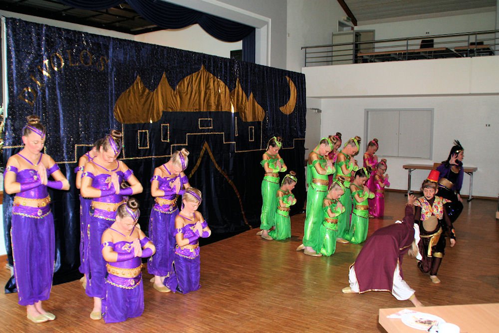Auftritt der Kindershowtanzgruppe Divolos der Tanzsportabteilung des SC Ostenland in den Kostümen der Märchenwelt aus Tausendundeine Nacht.
