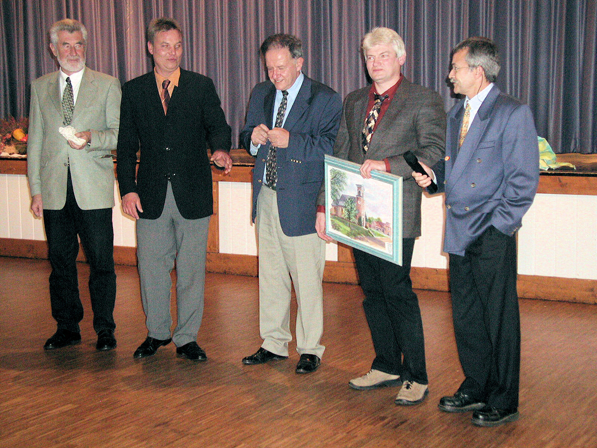 Über die Darstellung freuten sich besonders die bei dem Partnerschaftstreffen anwesenden Gründerväter der Partnerschaft, Altbürgermeister Bernhard Kößmeier und Hermann Schäfermeyer.